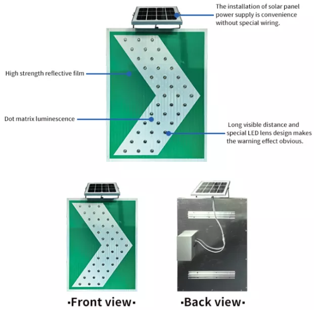 | Feature | reflective sign +LED luminous+ Solar Charge Panel |